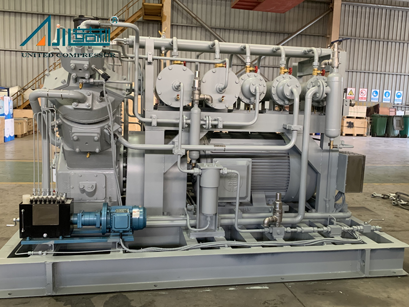 O compressor adota o tipo D (tipo de equilíbrio simétrico), lubrificação sem óleo, resfriado por água, tipo de pistão alternativo, compressão de 3 filas de 3 linhas e toda a unidade é fornecida de maneira modular.