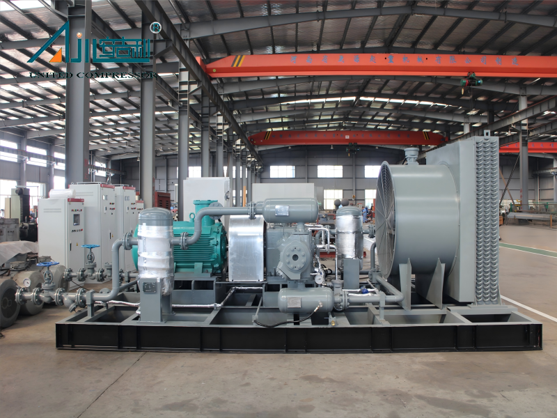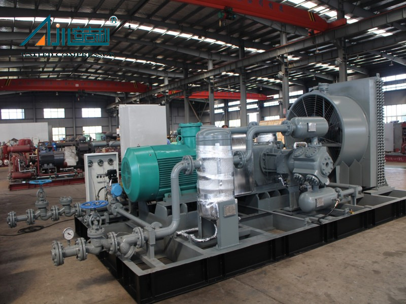 Operação estável e alta segurança: o sistema de resfriamento de ar forçado (equipado com resfriadores refrigerados a ar e ventiladores axiais) controla com eficiência a temperatura de escape (≤125 ℃), e o sistema de lubrificação de pressão (para o eixo de manivela, a biela de conexão e a cruz) garante lubrificação adequada de partes móveis. Um gabinete de controle PLC à prova de explosão (com a Siemens S7-1200 PLC e uma tela de toque Weinview de 7 polegadas) permite o monitoramento em tempo real dos parâmetros operacionais (como pressão de entrada/saída, pressão do óleo e temperatura de escape). Ele também fornece proteção automática de alarme e desligamento em caso de falhas (por exemplo, sobrecarga do motor, baixa pressão do óleo e alta temperatura de escape), atendendo aos requisitos de segurança dos ambientes explosivos (com o motor principal com uma nota à prova de explosão do EXDIIBT4).