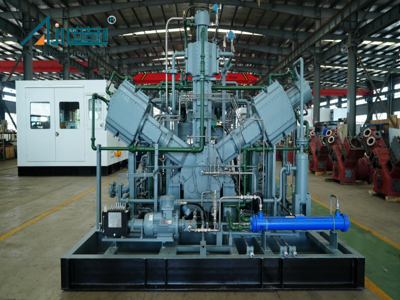 O compressor de hidrogênio W-3/0,1-150 possui alta automação, controlada por um Siemens PLC com uma tela sensível ao toque de 9 polegadas para monitoramento em tempo real e ajuste automático, reduzindo significativamente a intervenção manual e o tempo de inatividade em operações contínuas. Ele adota uma compressão em 5 estágios e um projeto de resfriamento de água em vários estágios (com o primeiro a terceiro estágios como refrigeradores de concha e tubo e o quarto a quinto estágios como refrigeradores de bobina), garantindo que a temperatura final de transmissão de gás seja ≤50 ℃ e a temperatura de escape seja ≤150 ℃, mantendo propriedades estáveis. Componentes críticos como válvulas de gás e empacotamento de haste são provenientes da Hoerbigger, uma marca internacional bem conhecida, enquanto os transmissores de pressão e temperatura usam produtos Rosemount-aprimorando gravemente a confiabilidade operacional a longo prazo.